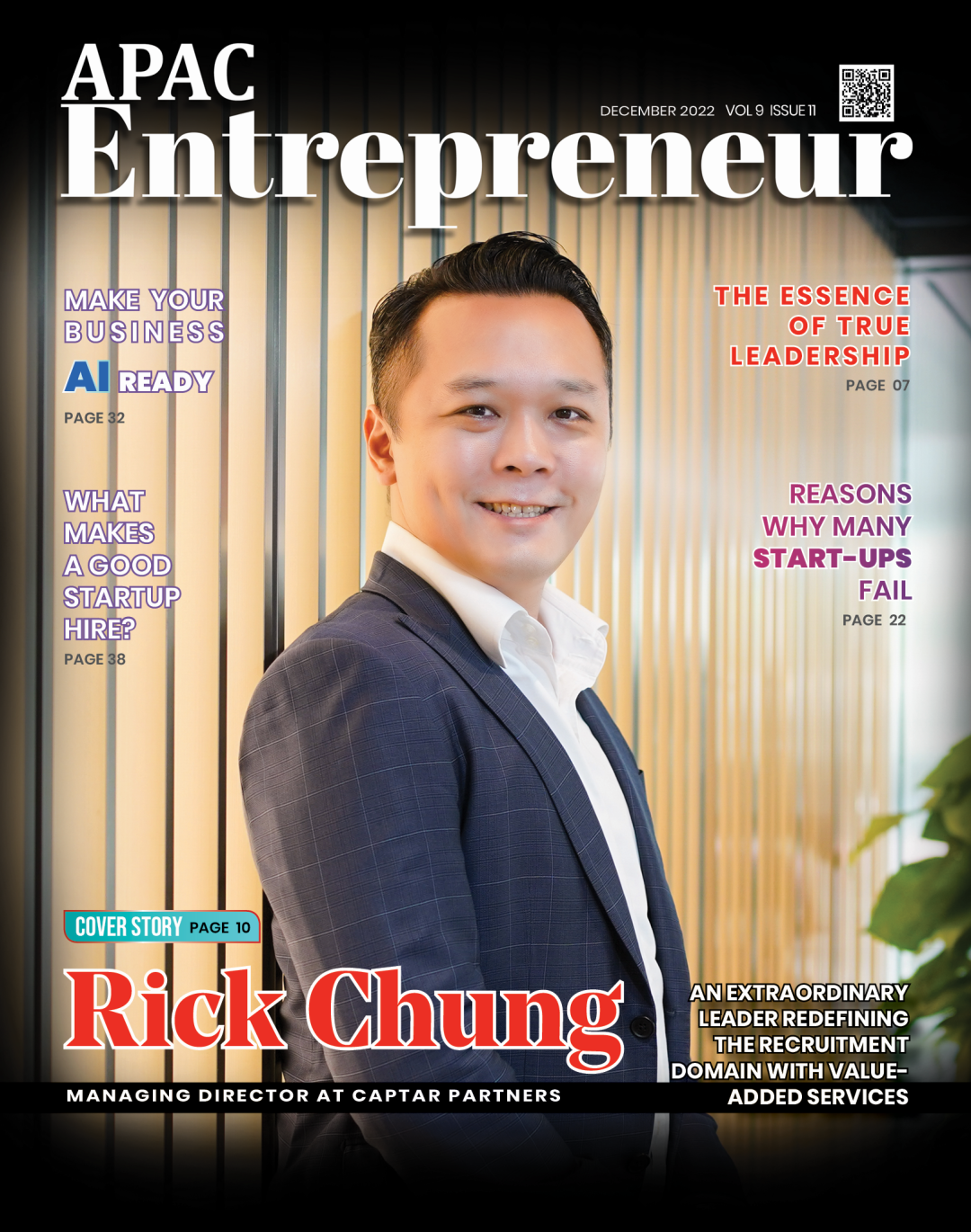 In December 2022, Rick Chung, the Managing Director at Captar Partners, a CGP Group company, has been named as "Most Influential Entrepreneur to Watch in Hong Kong in 2022" by APAC Entrepreneur, and was interviewed by the organization as the cover character of its magazine issued in December.